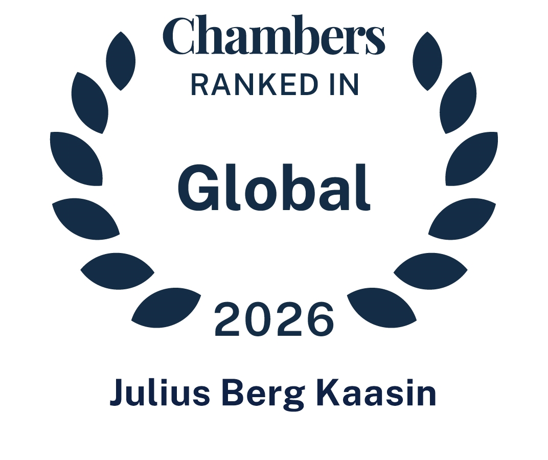 Brækhus-partner Julius Berg Kaasin rangeres «Up and Coming» av både Chambers Global 2026 og Chambers Europe Guide 2025 innenfor fagfeltet immaterialrett i Norge.