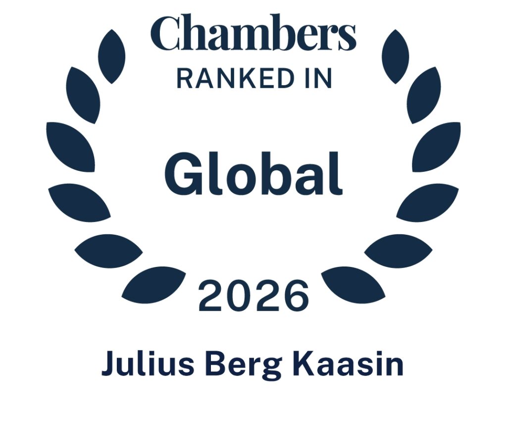 Brækhus-partner Julius Berg Kaasin rangeres «Up and Coming» av både Chambers Global 2026 og Chambers Europe Guide 2025 innenfor fagfeltet immaterialrett i Norge.